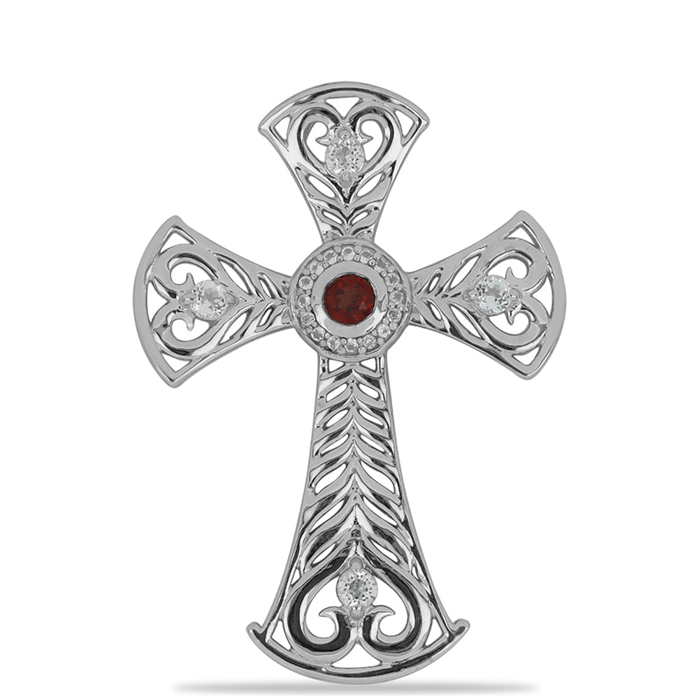 Kříž Stříbrný Přívěsek s Bartonským Granátem a Bílým Topazem