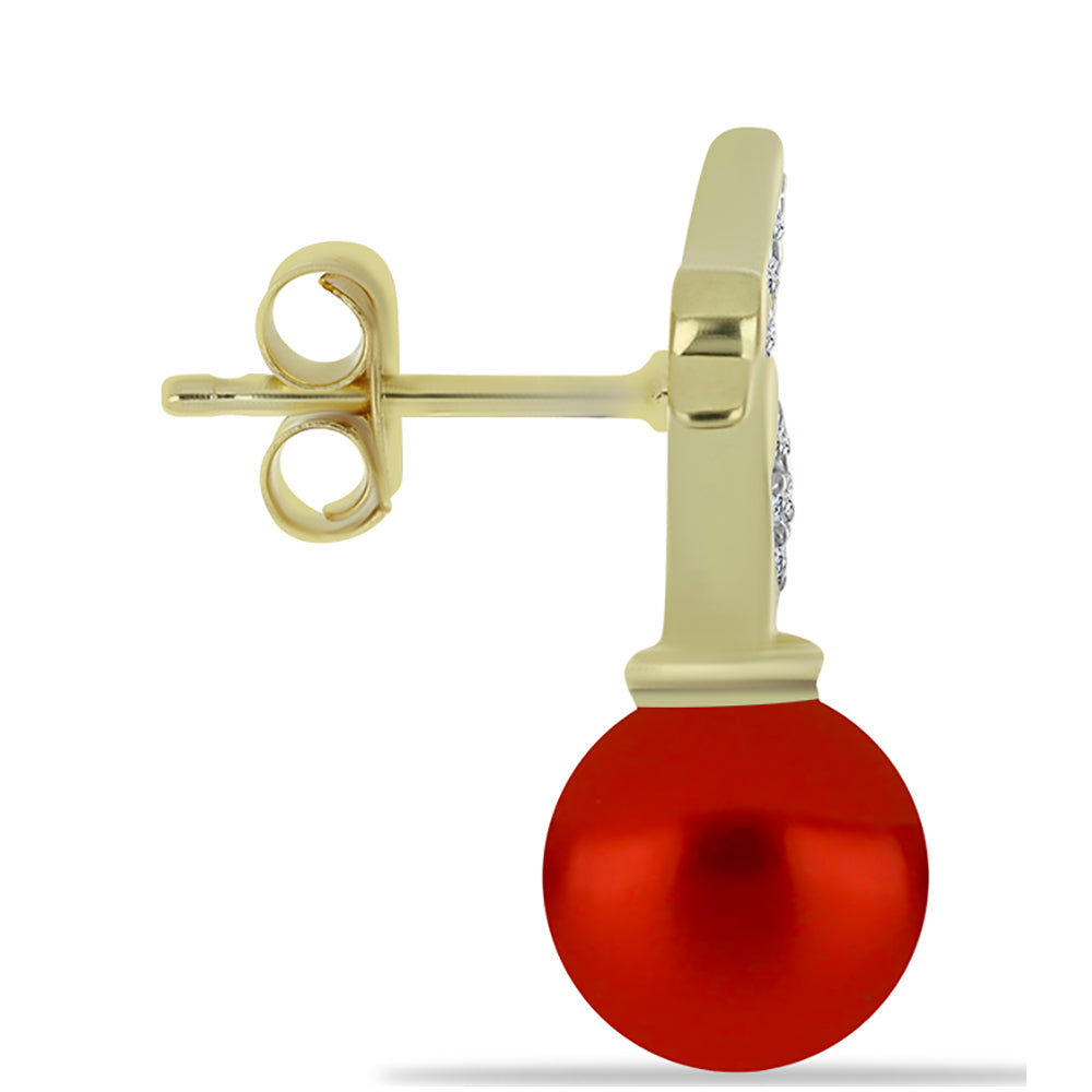 Pozlacené Stříbrné Náušnice s Červená sladkovodní Perlou a Bílým Topazem