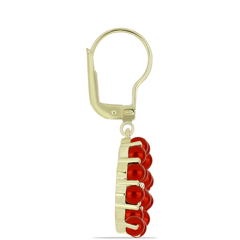 Pozlacené Stříbrné Náušnice s Červená sladkovodní Perlou a Bílým Topazem