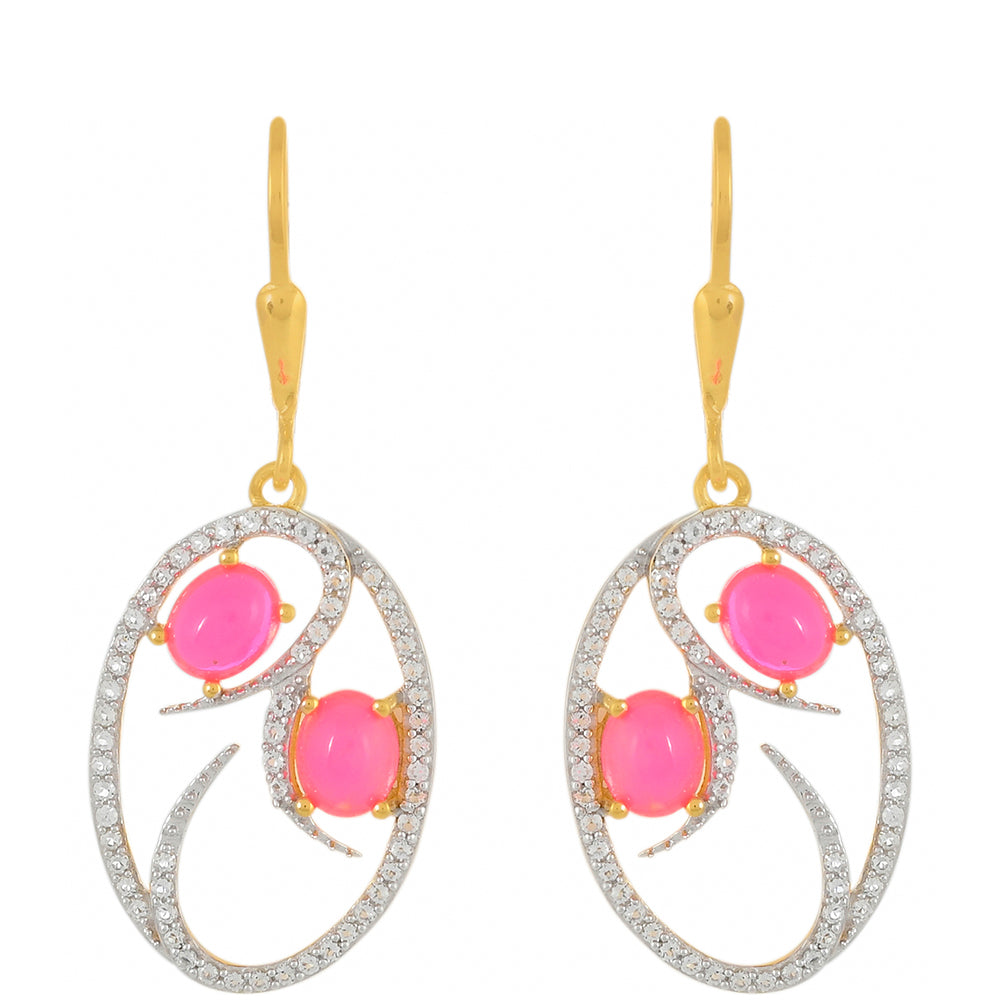 Pozlacené Stříbrné Náušnice s Etiopským Neónově Růžovým Opálem a Bílým Topazem - Karátové číslo: 1.35. přibližná hmotnost: 3.34 gramů KÓD: PCY10049 Zapínání náušnic: Dámský patent