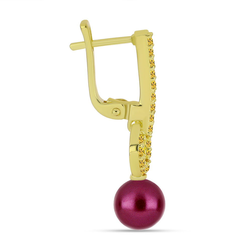 Pozlacené Stříbrné Náušnice s Fialová Sladkovodní Perlou a Uralským Citrínem - Karátové číslo: 6.58. přibližná hmotnost: 4.55 gramů KÓD: Y58935 Velikost Šperku: 32.35 mm x 8.80 mm Zapínání náušnic: Ruský patent