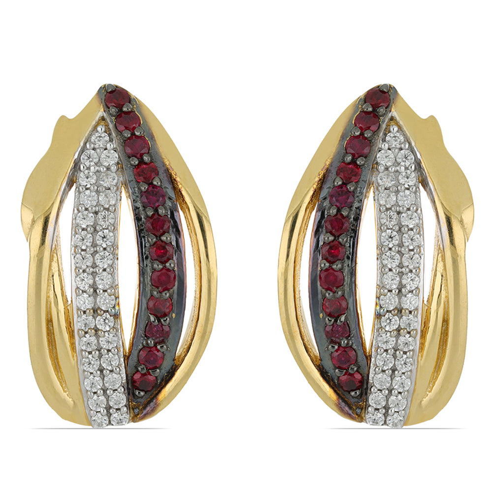 Pozlacené Stříbrné Náušnice s Madagaskarským Rubínem a Přírodním Bílým Zirkonem - Karátové číslo: 1.78. přibližná hmotnost: 7.58 gramů KÓD: Y44521 Velikost Šperku: 25.06 mm x 13.25 mm