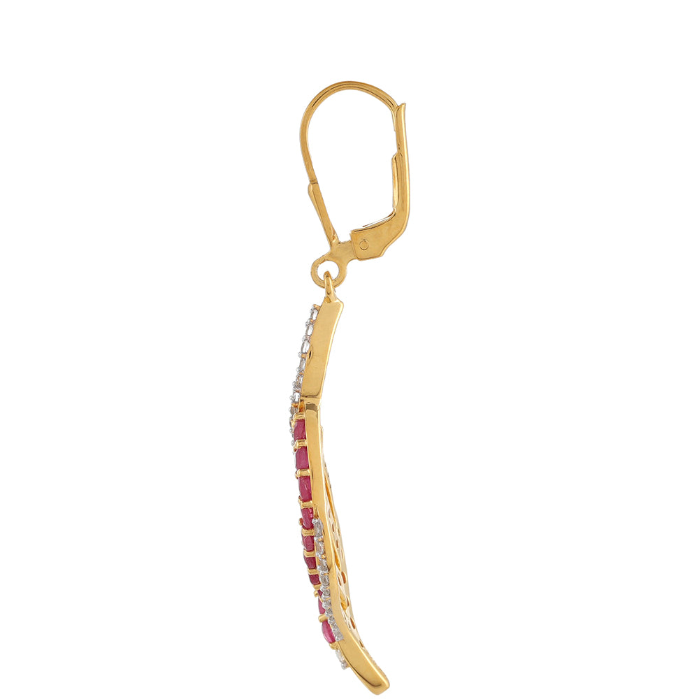 Pozlacené Stříbrné Náušnice s Thajským Rubínem a Bílým Topazem - Karátové číslo: 2.38. přibližná hmotnost: 5.5 gramů KÓD: PCY10781 Zapínání náušnic: Dámský patent