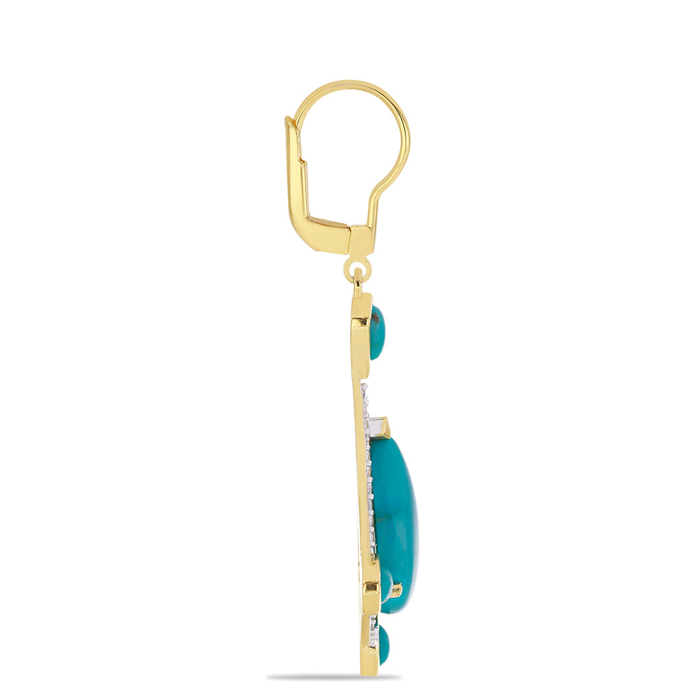 Pozlacené Stříbrné Náušnice s Tyrkysem Sleeping Beauty a Bílým Topazem - Karátové číslo: 9.06. přibližná hmotnost: 7.34 gramů KÓD: Y55292 Velikost Šperku: 44 mm x 18.32 mm Zapínání náušnic: Dámský patent