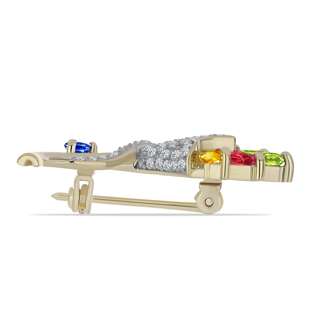 Pozlacený Stříbrný Brož s Roseberským Duhovým Safírem a Bílým Topazem - Karátové číslo: 2.12. přibližná hmotnost: 3.6 gramů KÓD: Y59737 Velikost Šperku: 20.80 mm x 32.10 mm