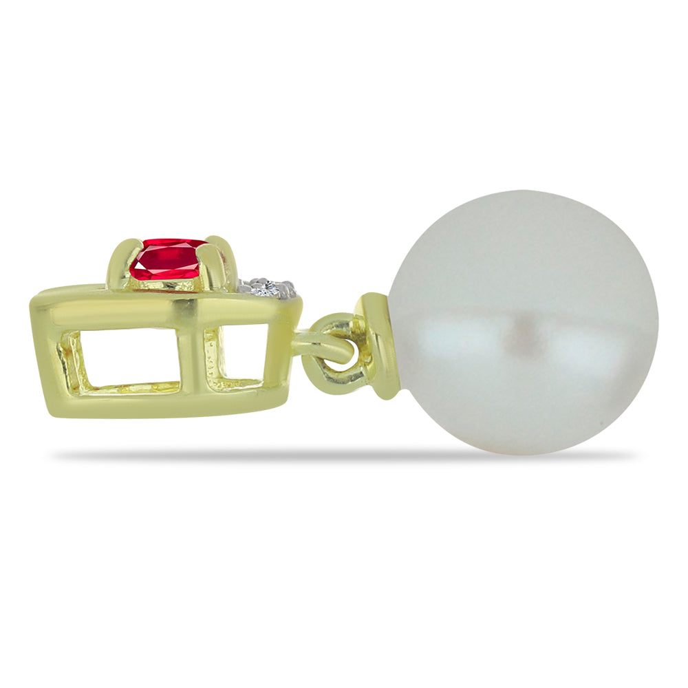 Pozlacený Stříbrný Přívěsek s Bílou Sladkovodní Perlou a Madagaskarským Rubínem