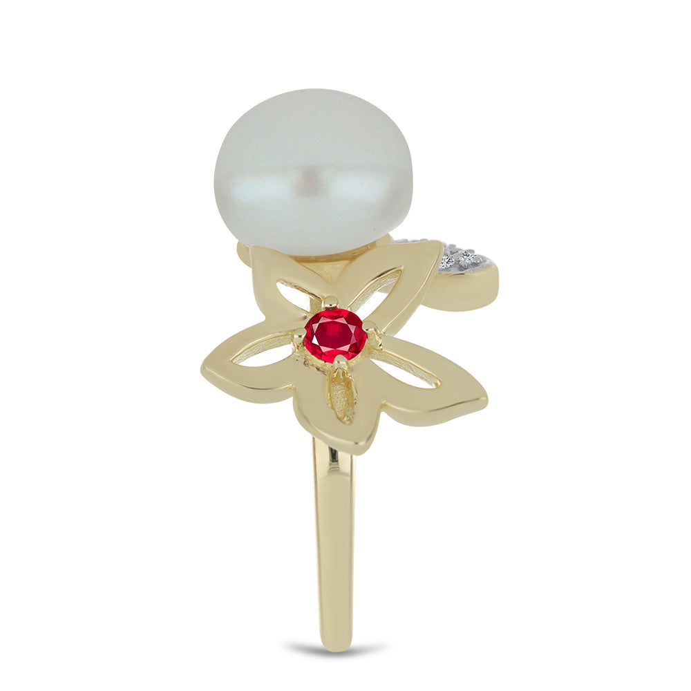 Pozlacený Stříbrný Prsten - Karátové číslo: 6.42. s Bílou Sladkovodní Perlou a Madagaskarským Rubínem přibližná hmotnost: 5.38 gramů KÓD: Y59224 Velikost Šperku: 16 mm x 23.73 mm
