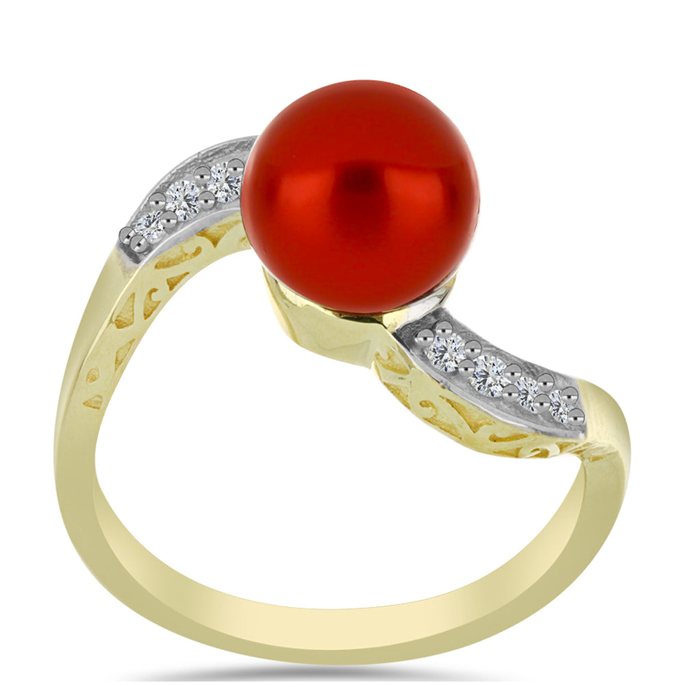 Pozlacený Stříbrný Prsten s Červená sladkovodní Perlou a Bílým Topazem