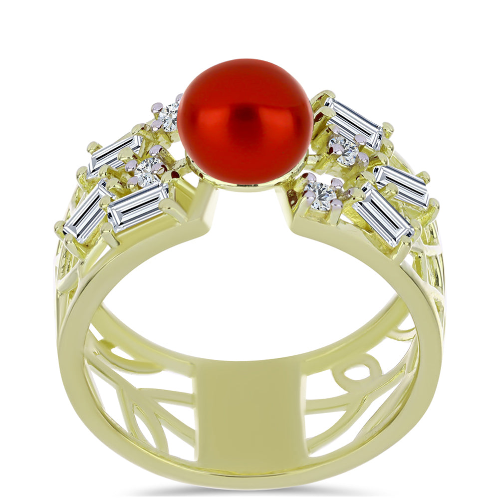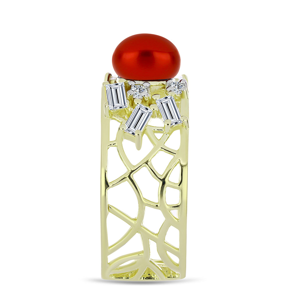 Pozlacený Stříbrný Prsten s Červená sladkovodní Perlou a Bílým Topazem