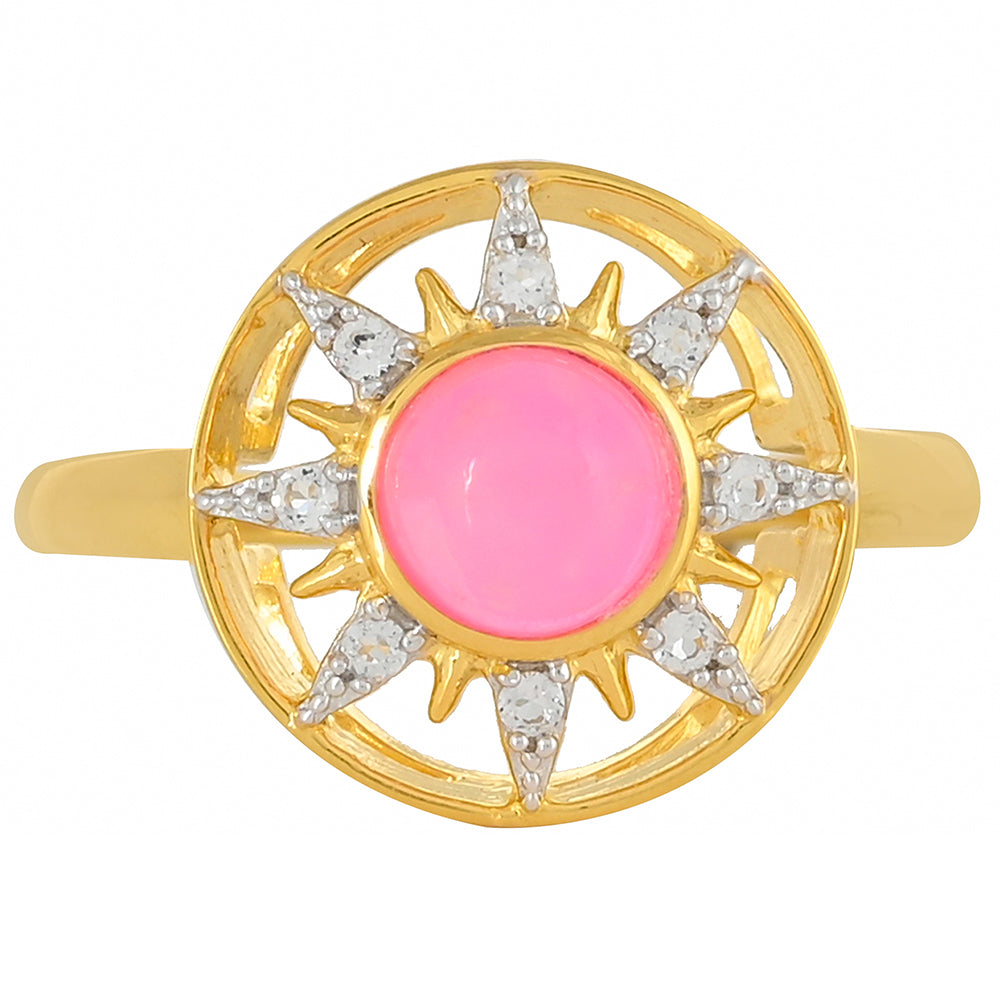 Pozlacený Stříbrný Prsten - Karátové číslo: 0.71. s Etiopským Neónově Růžovým Opálem a Bílým Topazem přibližná hmotnost: 2.84 gramů KÓD: PCY10023