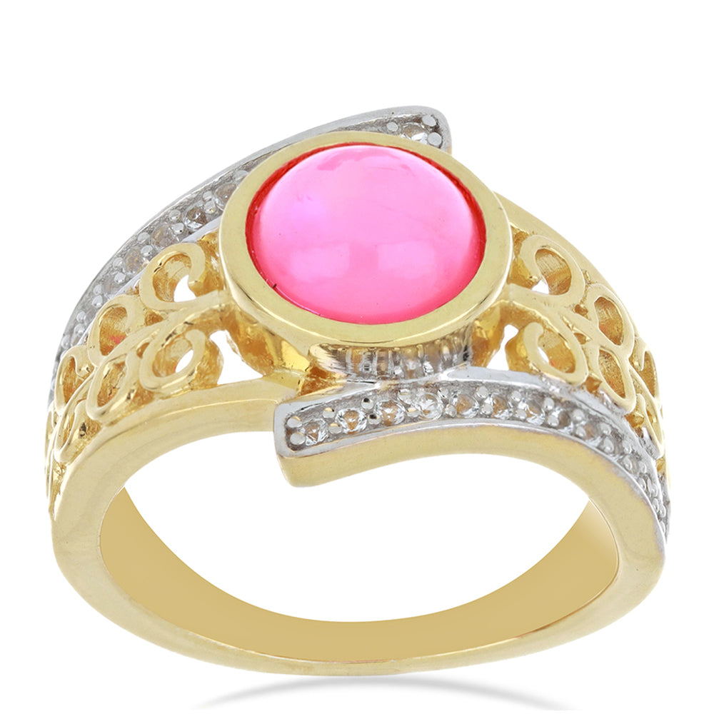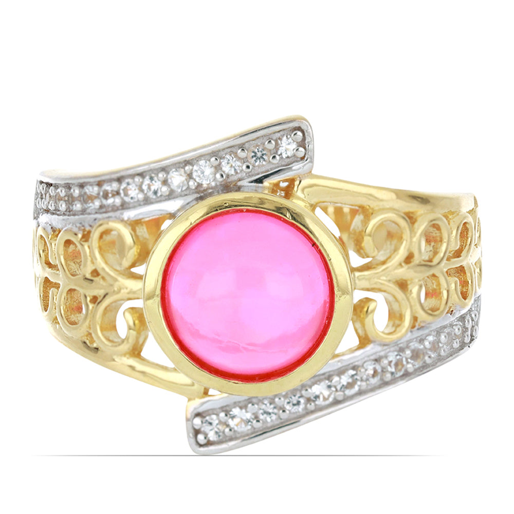 Pozlacený Stříbrný Prsten - Karátové číslo: 1.91. s Etiopským Růžovým Opálem z Lega Dembi a Bílým Topazem přibližná hmotnost: 6.27 gramů KÓD: Y50073 Velikost Šperku: 17.20 mm x 24.10 mm