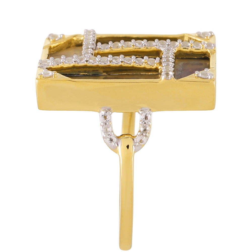 Pozlacený Stříbrný Prsten - Karátové číslo: 6.17. s Mušlí Paua a Bílým Topazem přibližná hmotnost: 5.84 gramů KÓD: PCY10909