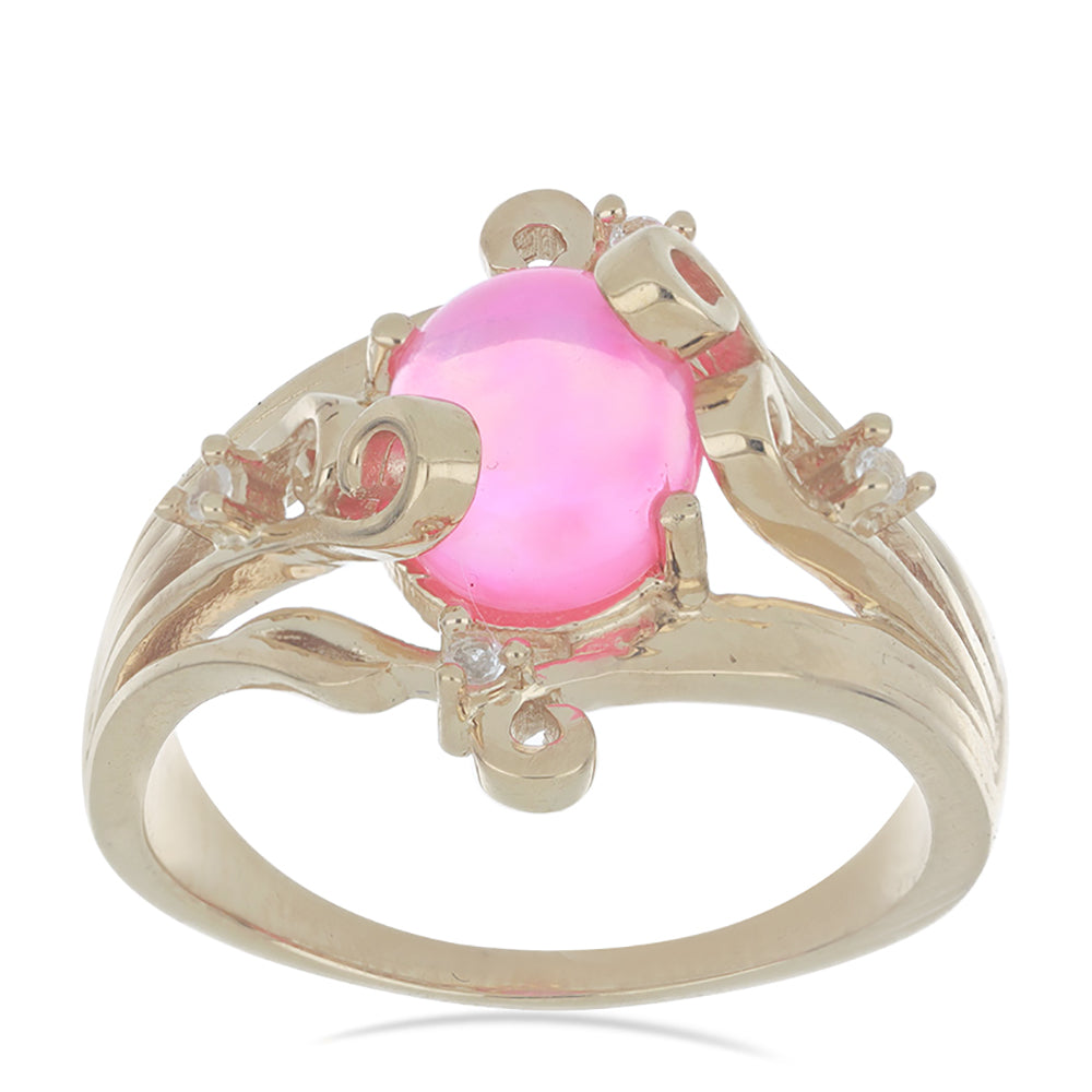 Pozlacený Stříbrný Prsten - Karátové číslo: 1.39. s Růžovým Opálem z Lega Dembi a Bílým Topazem přibližná hmotnost: 5.31 gramů KÓD: Y47473 Velikost Šperku: 19.46 mm x 23.11 mm