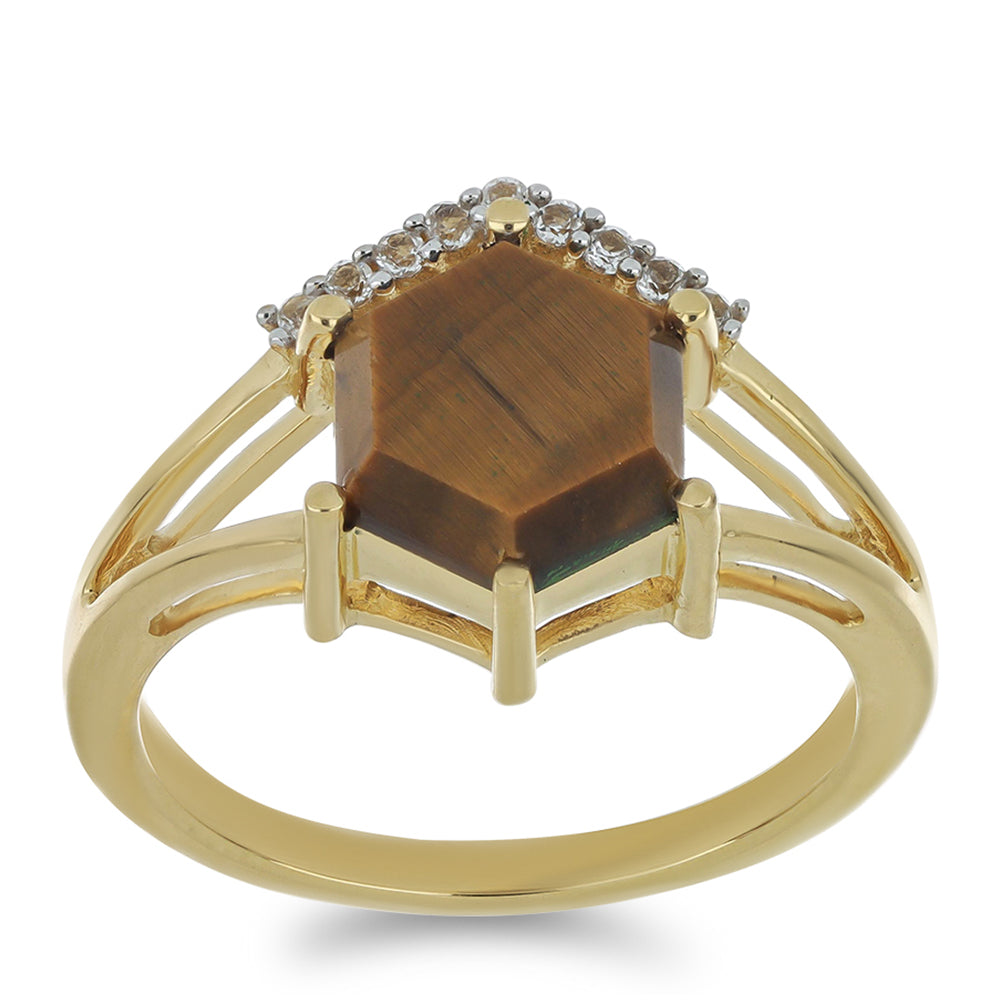 Pozlacený Stříbrný Prsten s Tygřím Okem a Bílým Topazem