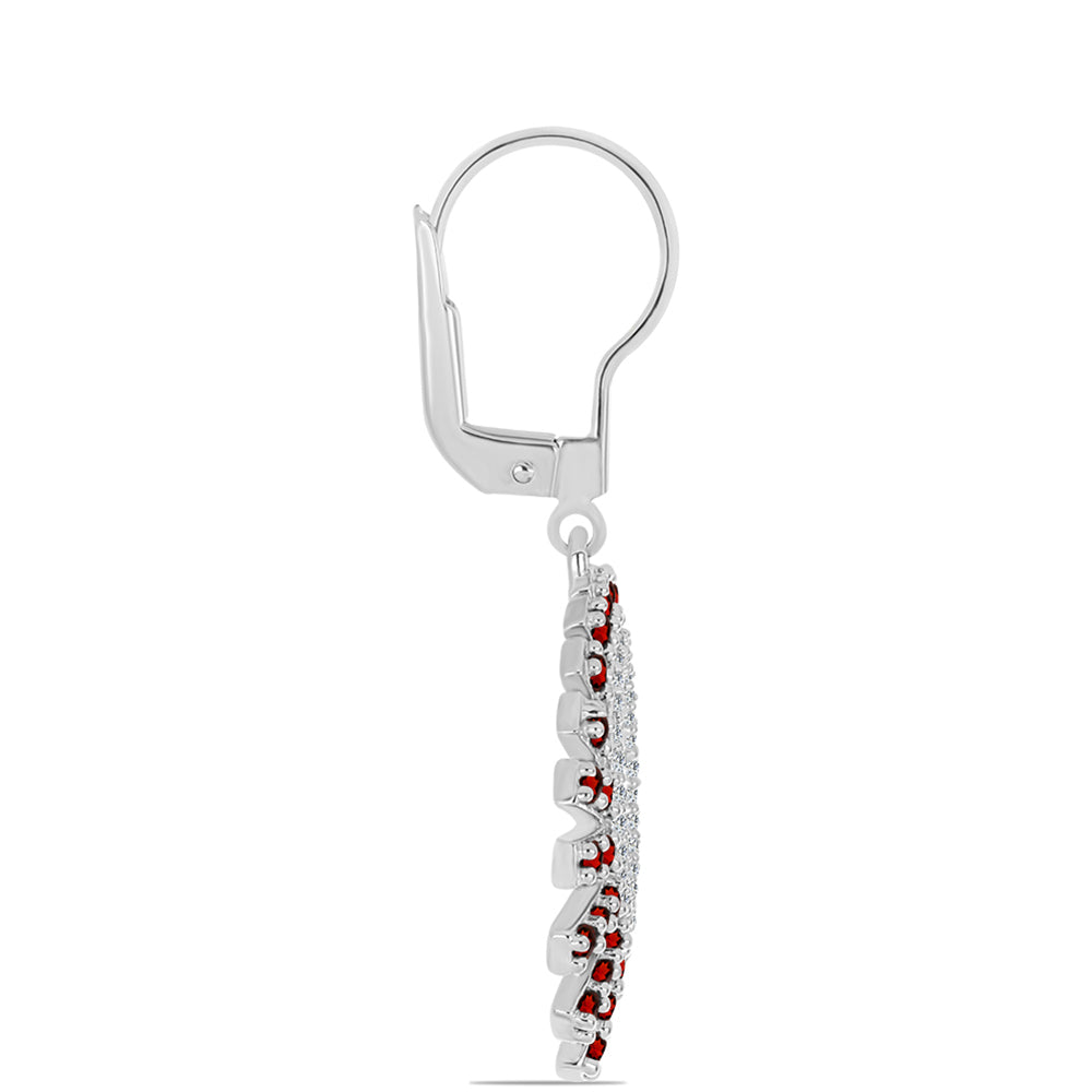 Stříbrné Náušnice s Bartonským Granátem a Bílým Topazem - Karátové číslo: 1.76. přibližná hmotnost: 5.92 gramů KÓD: Y59654 Velikost Šperku: 32.60 mm x 21.40 mm Zapínání náušnic: Dámský patent