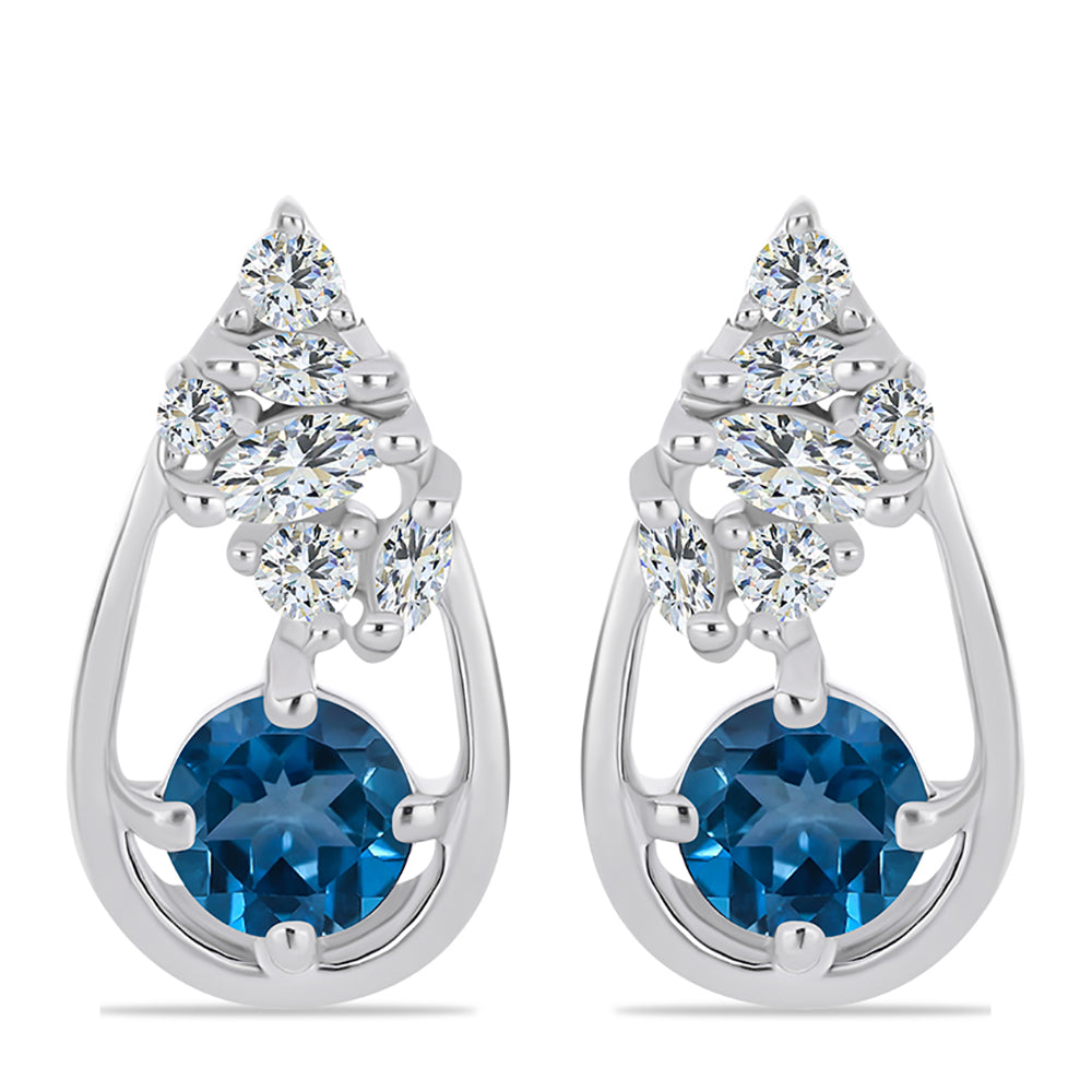 Stříbrné Náušnice s Londýnským Modrým Topazem a Bílým Topazem