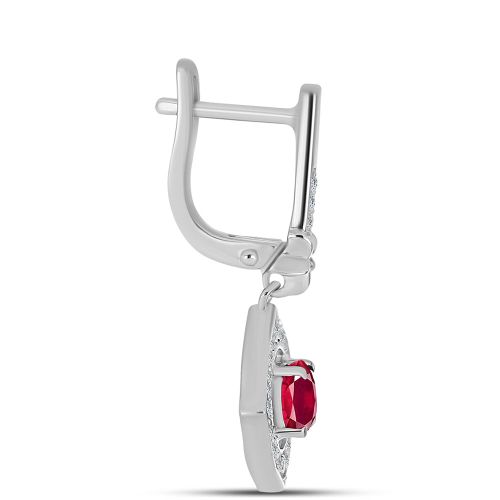 Stříbrné Náušnice s Madagaskarským Rubínem a Bílým Topazem - Karátové číslo: 1.9. přibližná hmotnost: 4.68 gramů KÓD: Y62082 Velikost Šperku: 28.80 mm x 13.10 mm Zapínání náušnic: Ruský patent