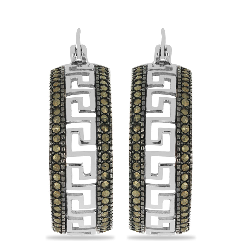 Stříbrné Náušnice s Rakouským Markazitem - Karátové číslo: 1.92. přibližná hmotnost: 10.57 gramů KÓD: Y52504 Velikost Šperku: 29.26 mm x 9.08 mm Zapínání náušnic: Nekonečná obruč