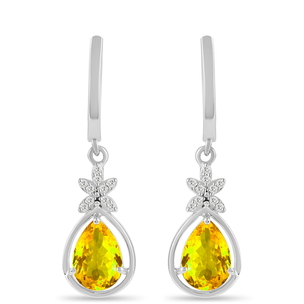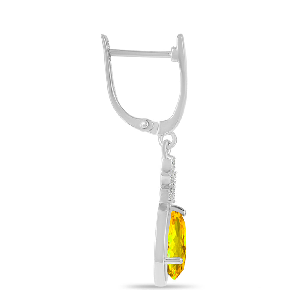 Stříbrné Náušnice s Uralským Citrínem a Bílým Topazem - Karátové číslo: 3.67. přibližná hmotnost: 4.59 gramů KÓD: Y58185 Velikost Šperku: 37.15 mm x 10.98 mm Zapínání náušnic: Ruský patent