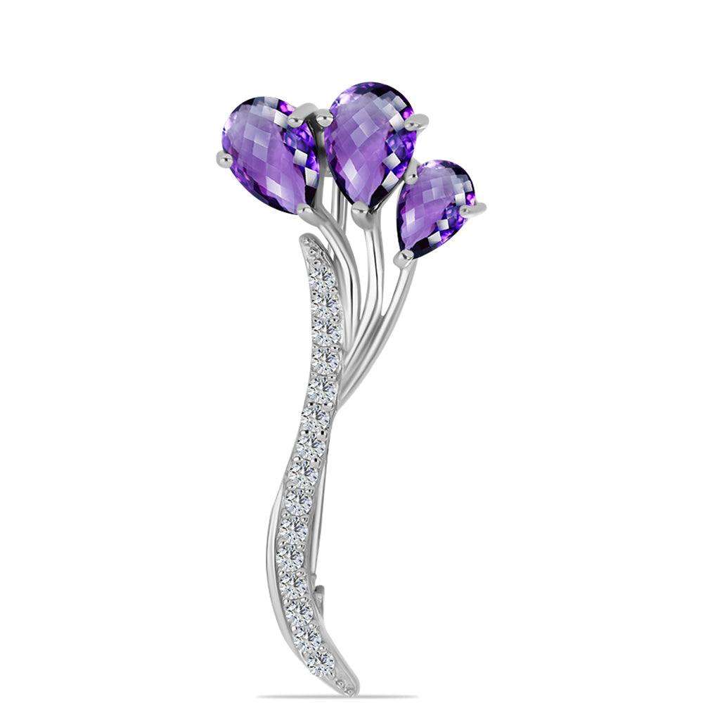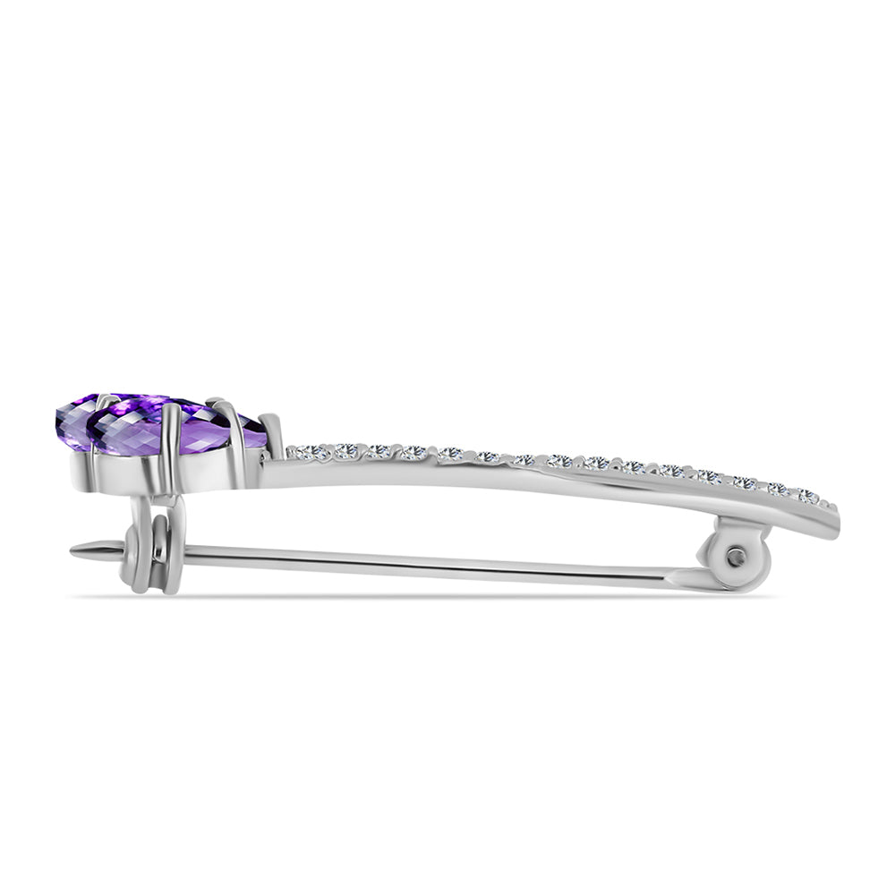 Stříbrný Brož s Marockým Ametystem a Bílým Topazem - Karátové číslo: 1.94. přibližná hmotnost: 2.46 gramů KÓD: Y60134 Velikost Šperku: 35.00 mm x 16.00 mm