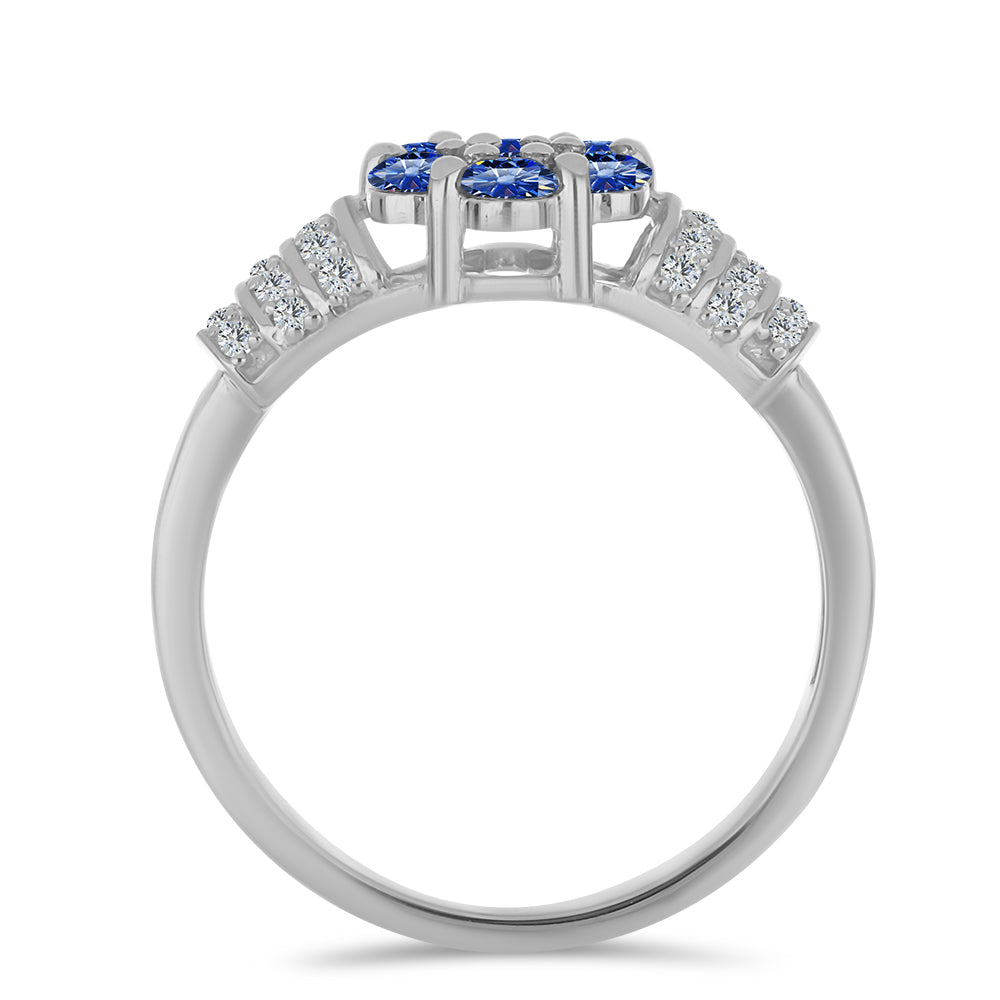 Stříbrný Prsten s Certifikovaný Královským modrým moissanitem pěstovaný v laboratoři a Bílým Topazem