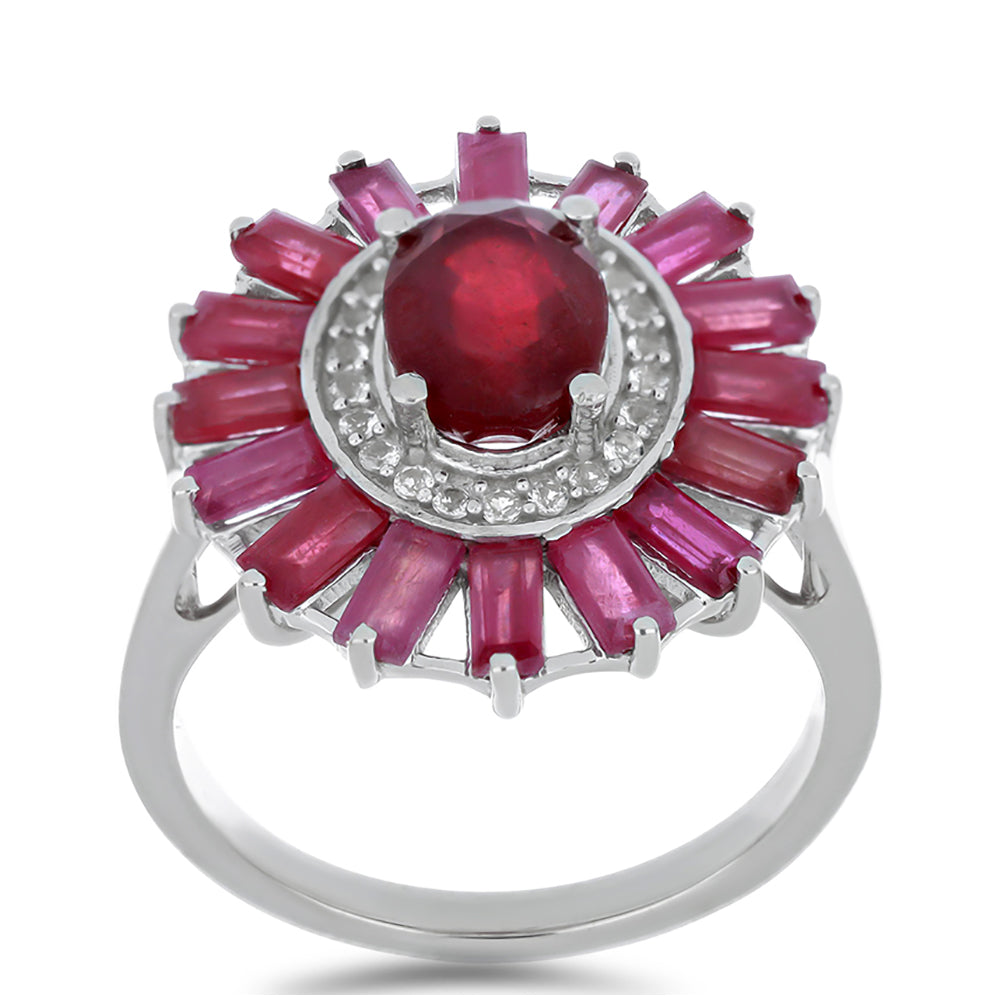 Stříbrný Prsten - Karátové číslo: 5.08. s Madagaskarským Rubínem a Bílým Topazem přibližná hmotnost: 6.43 gramů KÓD: Y54073 Velikost Šperku: 21.80 mm x 21.70 mm