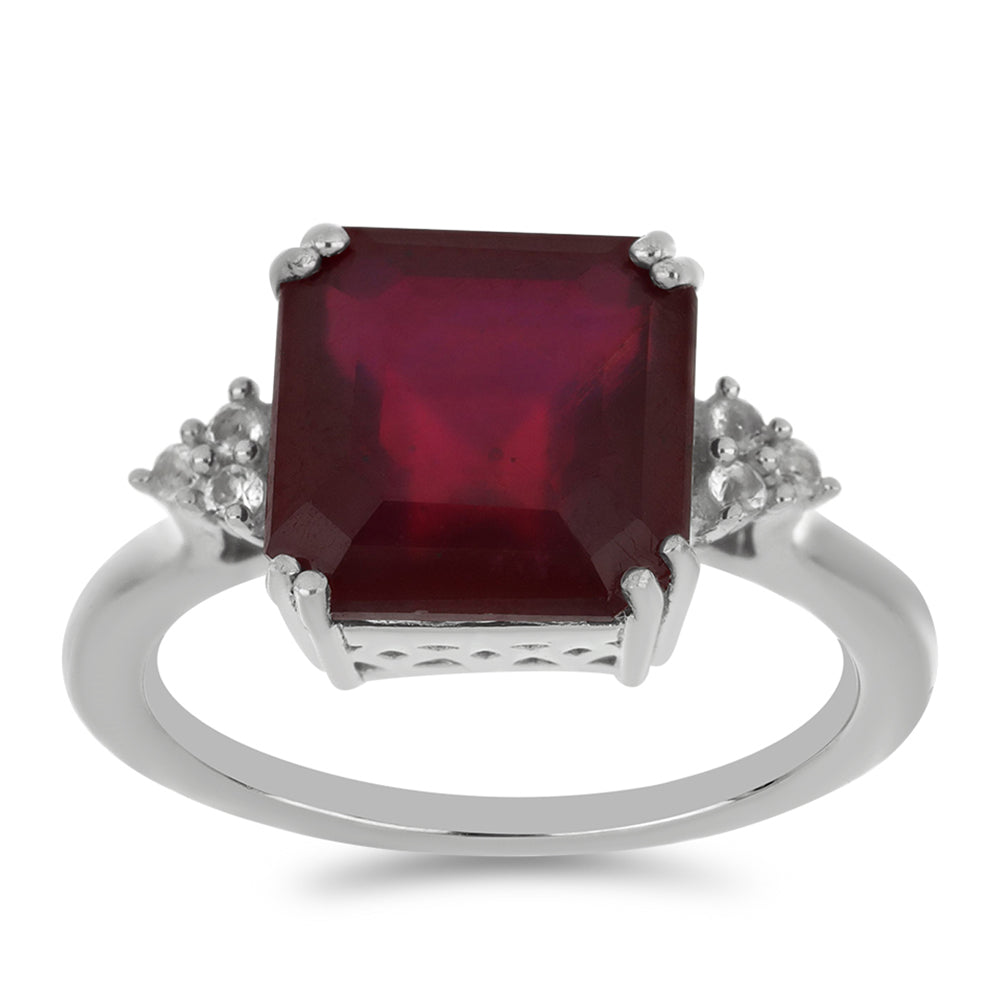 Stříbrný Prsten - Karátové číslo: 6.65. s Madagaskarským Rubínem a Bílým Topazem přibližná hmotnost: 3.83 gramů KÓD: Y55656 Velikost Šperku: 10.60 mm x 22.60 mm