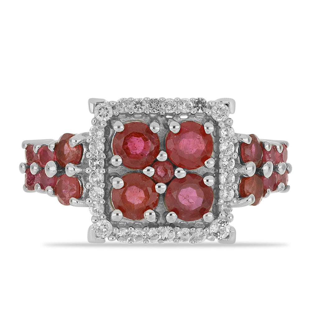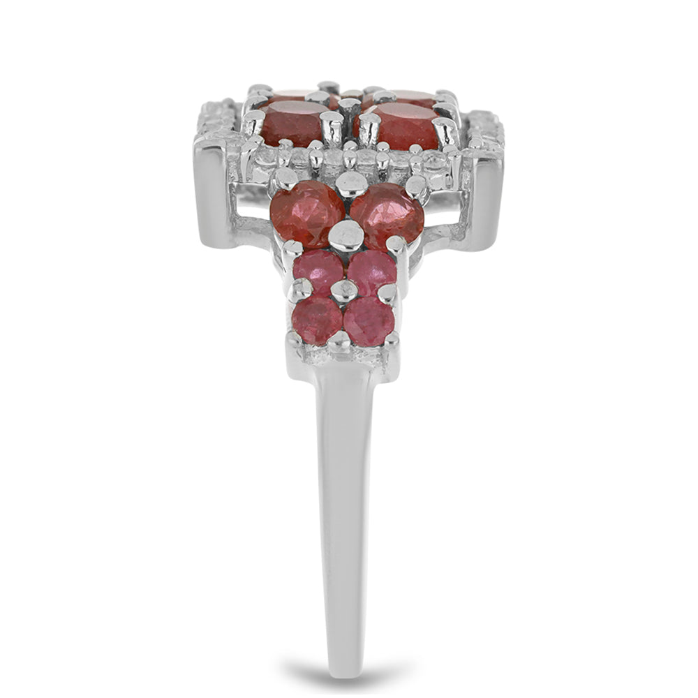 Stříbrný Prsten - Karátové číslo: 3.72. s Madagaskarským Rubínem a Bílým Topazem přibližná hmotnost: 4.57 gramů KÓD: Y57058 Velikost Šperku: 13.37 mm x 24.72 mm