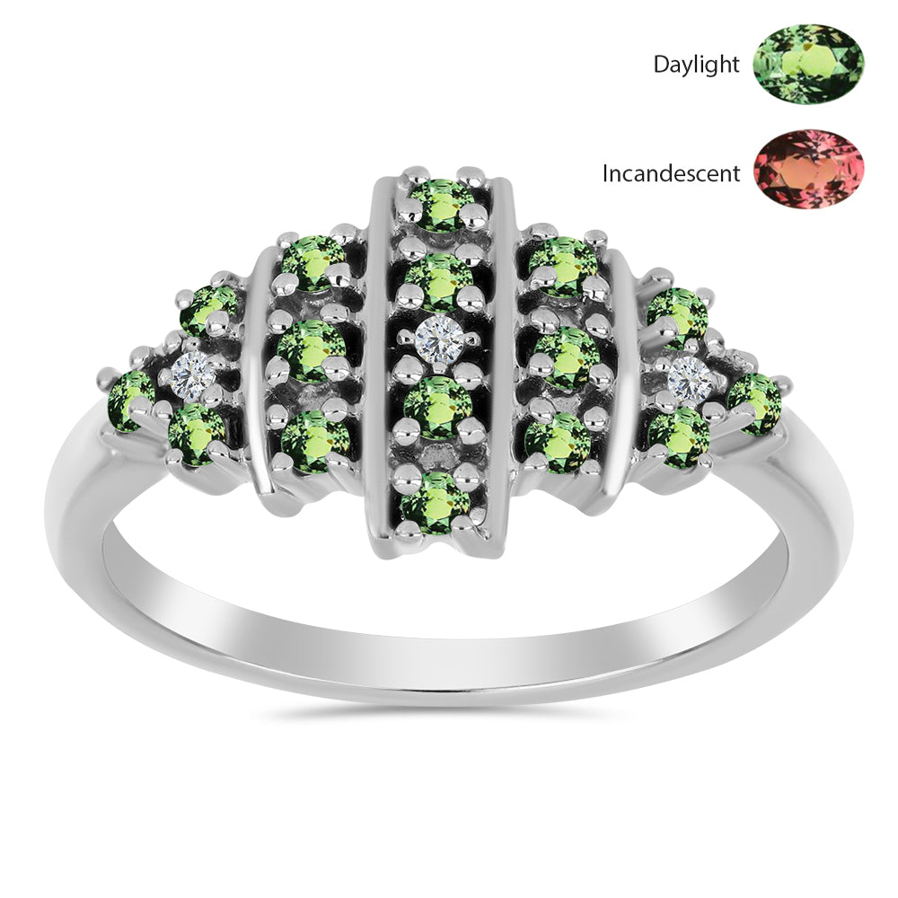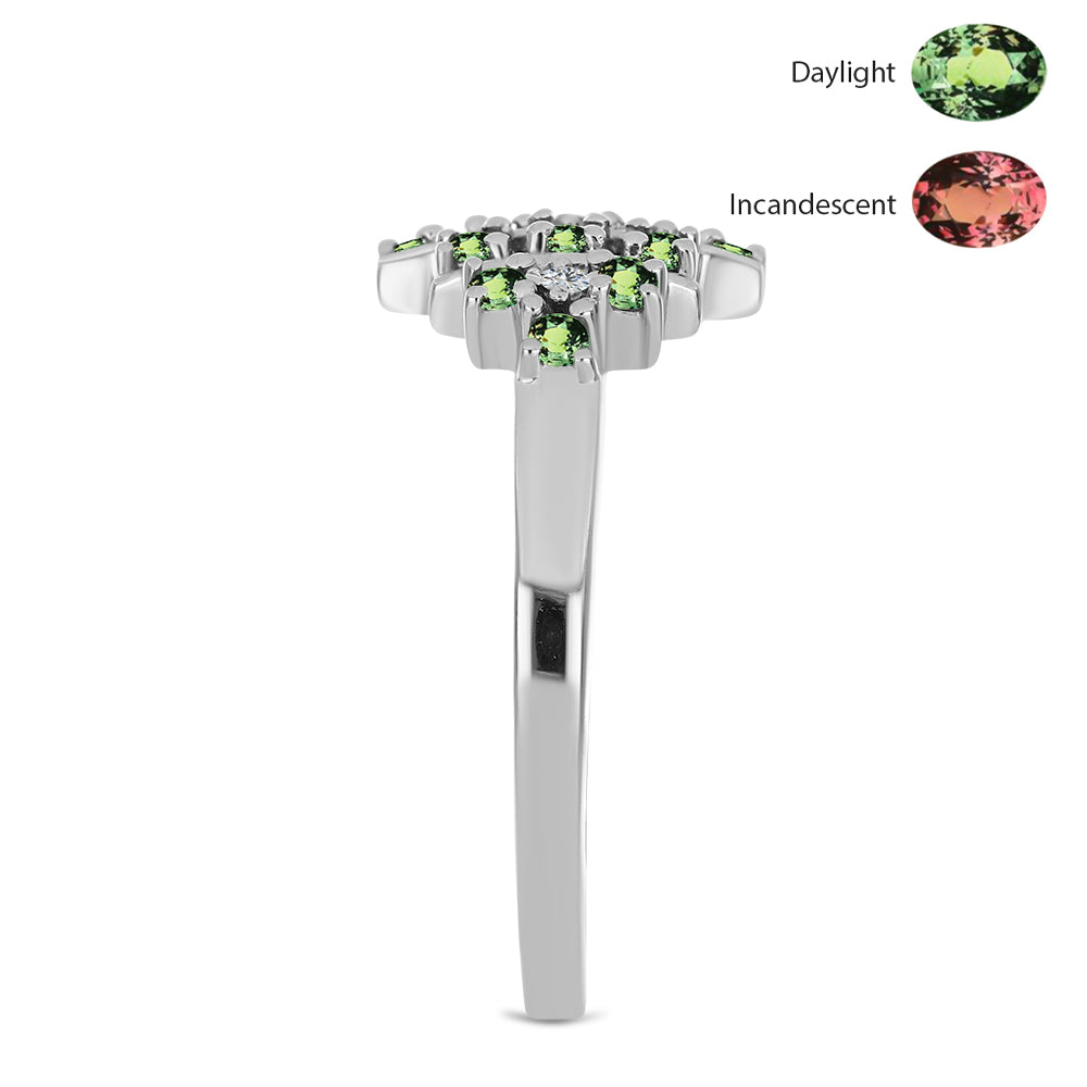 Stříbrný Prsten s Přírodním Alexandritem a Bílým Topazem